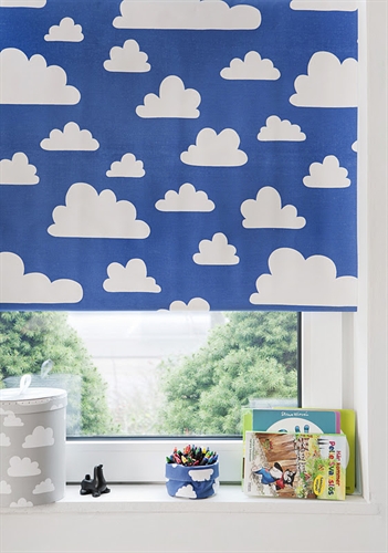 Läs mer härMörkläggande rullgardin i blått med vita moln. Längd 175 cm, bredd 100 cm. -